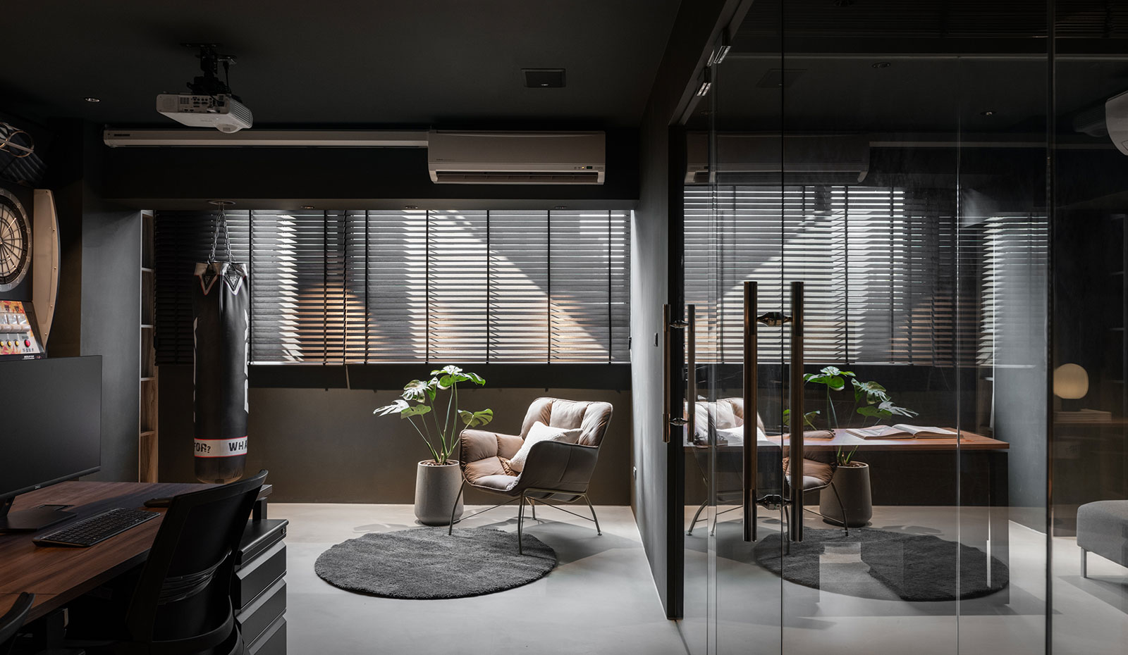 Considering the proprietor’s appetite for relaxation, this design seamlessly connects the living room, dining room, and study, revealing an inviting and spacious communal space. Cleverly exploiting blinds to filter natural light and strategically placing a sphere lamp on the floor, the arrangement gently cultivates a soothing ambiance via its illumination. Combined with the sleek and clear-off furnishing, it embodies the essence of a cozy home, dissipating the weariness of everyday life.